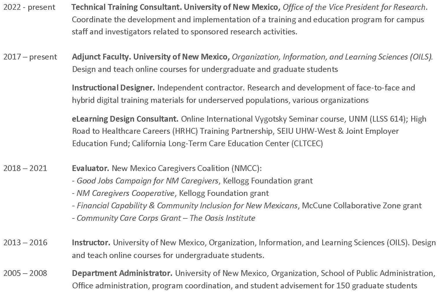 relevant work history